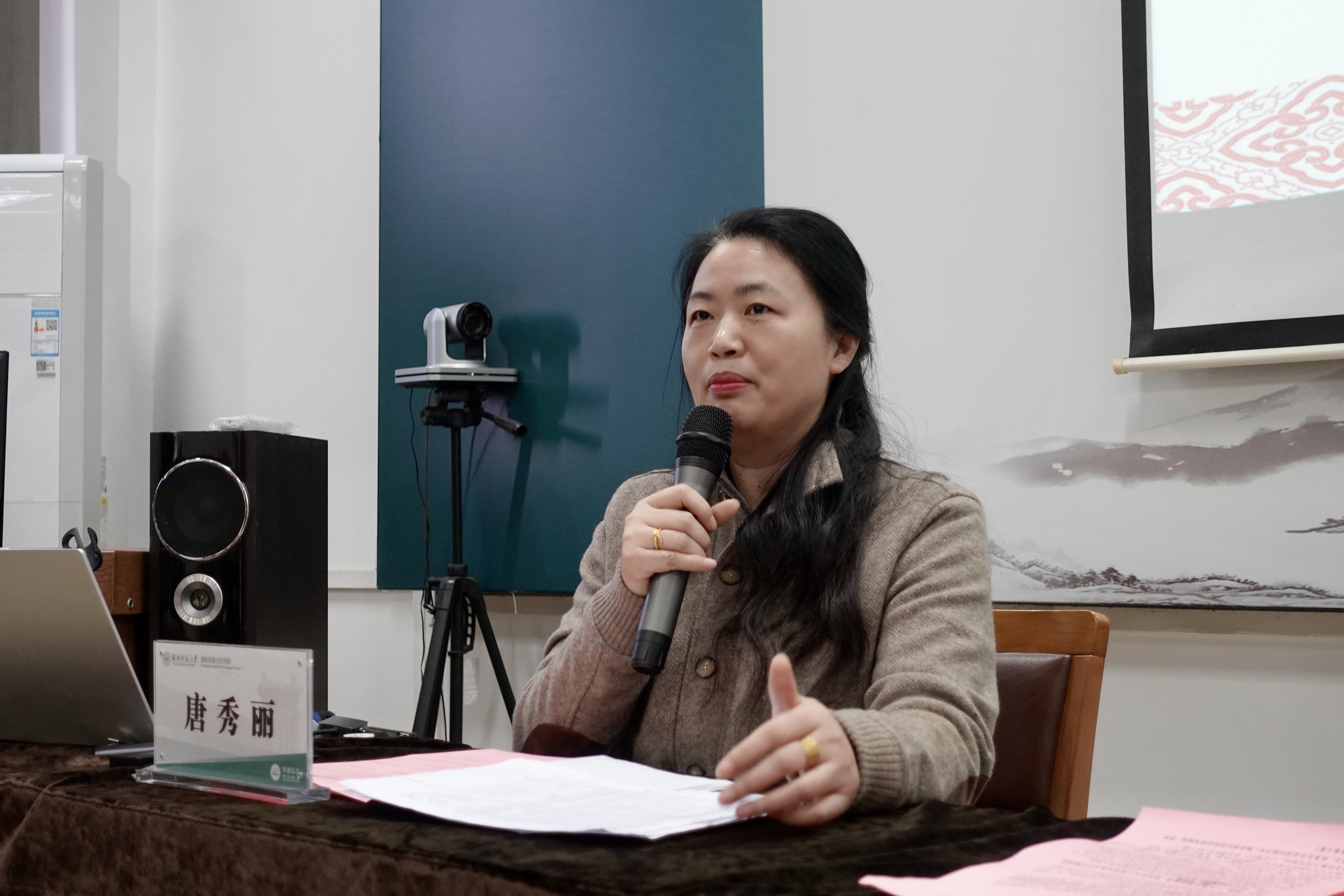 学员代表发言。日本樱之华中文学校的高雯女士回顾了自己三次到访长沙的经历,并分享了此次学习过程中的感悟。她表示,通过一系列课程学习和文化考察,学员们不仅提升了教学能力,更领略了湖湘文化的精神内涵。她将长沙人“吃得苦、霸得蛮、耐得烦”的特质,转化为“吃得苦、扎得下、守得住”的华文教育精神,以此激励大家在海外华文教育的道路上坚定前行。