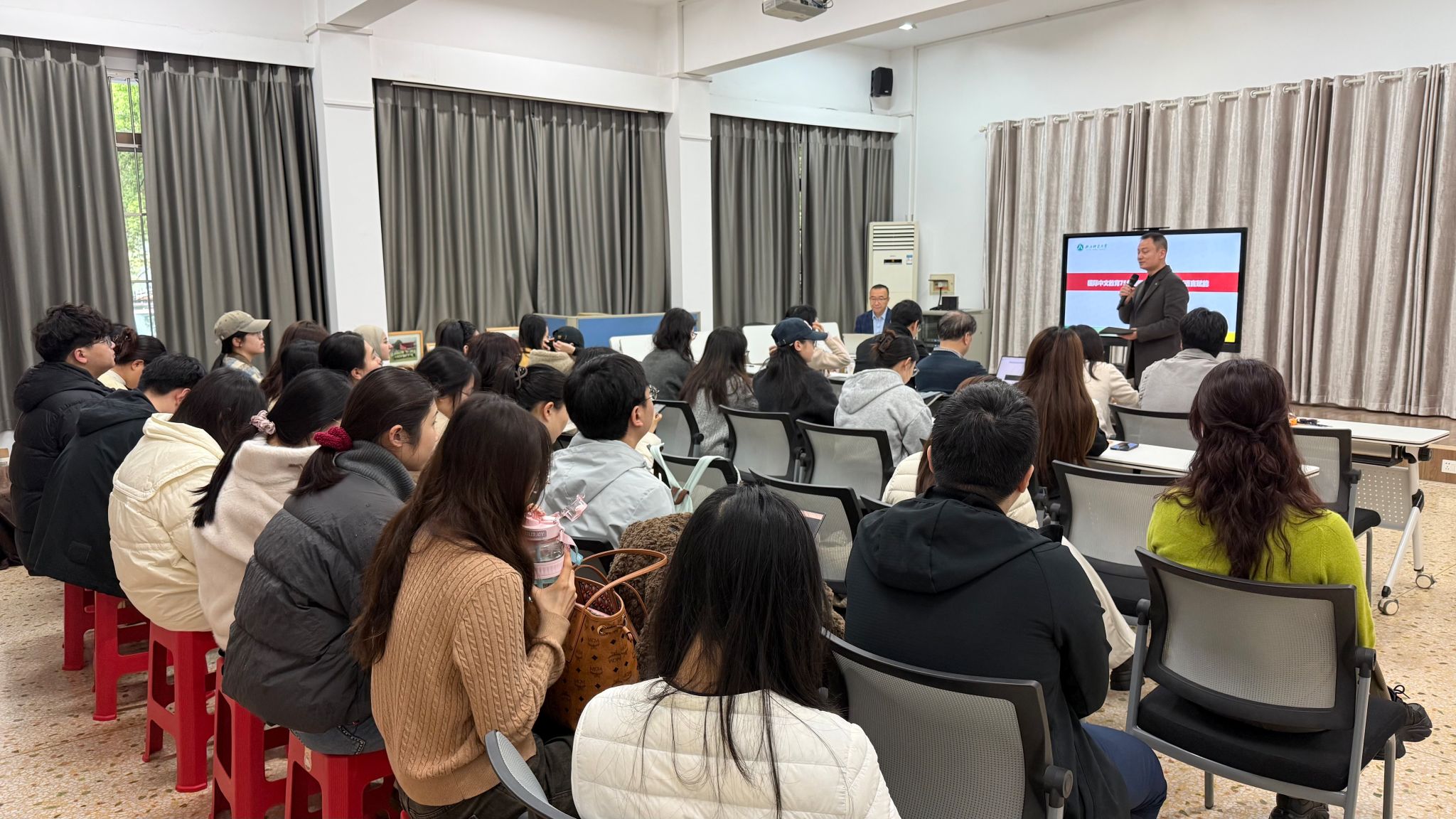 我院教师代表,对外汉语专业、国际中文教育专业全体研究生聆听讲座。